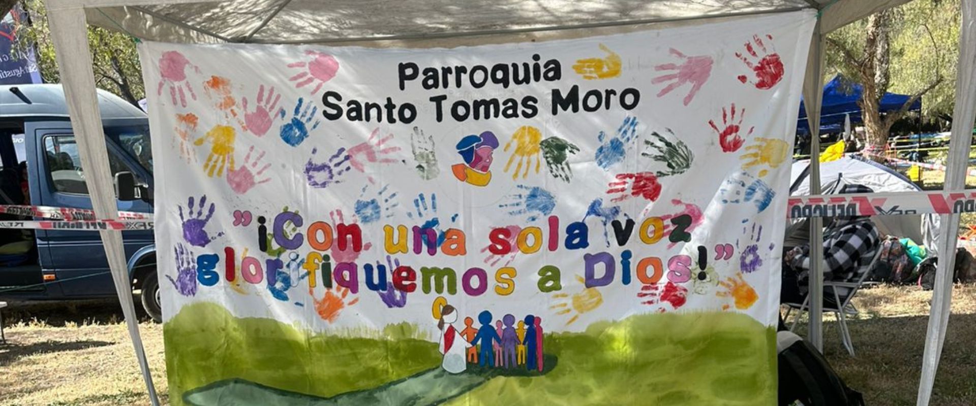 El Santuario de Santa Teresa de Los Andes amaneció lleno de color, esperanza y creatividad. Desde temprano, comenzaron a instalarse los lienzos enviados por las parroquias, colegios, movimientos y comunidades que participan en la 35ª Peregrinación al Santuario de Teresita, cada uno con mensajes que reflejan la alegría de los jóvenes que ya están en camino.