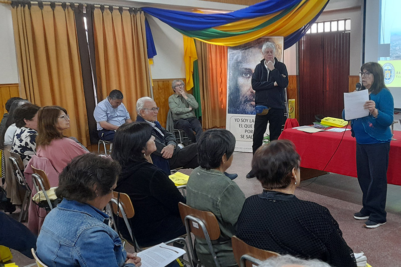 Posteriormente, Sergio Cárdenas del área de Comunidades de la Zona, invito a cada grupo presentar una síntesis de su reflexión, enriqueciendo el diálogo común. Además, se entregó a cada participante un folleto del Discernimiento Pastoral Comunitario, que servirá como apoyo metodológico para continuar el trabajo en sus parroquias y comunidades.