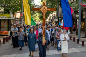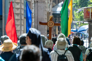 Posteriormente, la caminata continuó hacia la Iglesia de Santo Domingo, estación a cargo de los Institutos Seculares, que reflexionaron sobre la sinodalidad como modo de caminar juntos en la misión. El último punto del trayecto fue la Parroquia El Sagrario, donde los varones consagrados profundizaron en la realidad de la ciudad, sus desafíos pastorales y la necesidad de ser presencia evangelizadora en medio de ella.