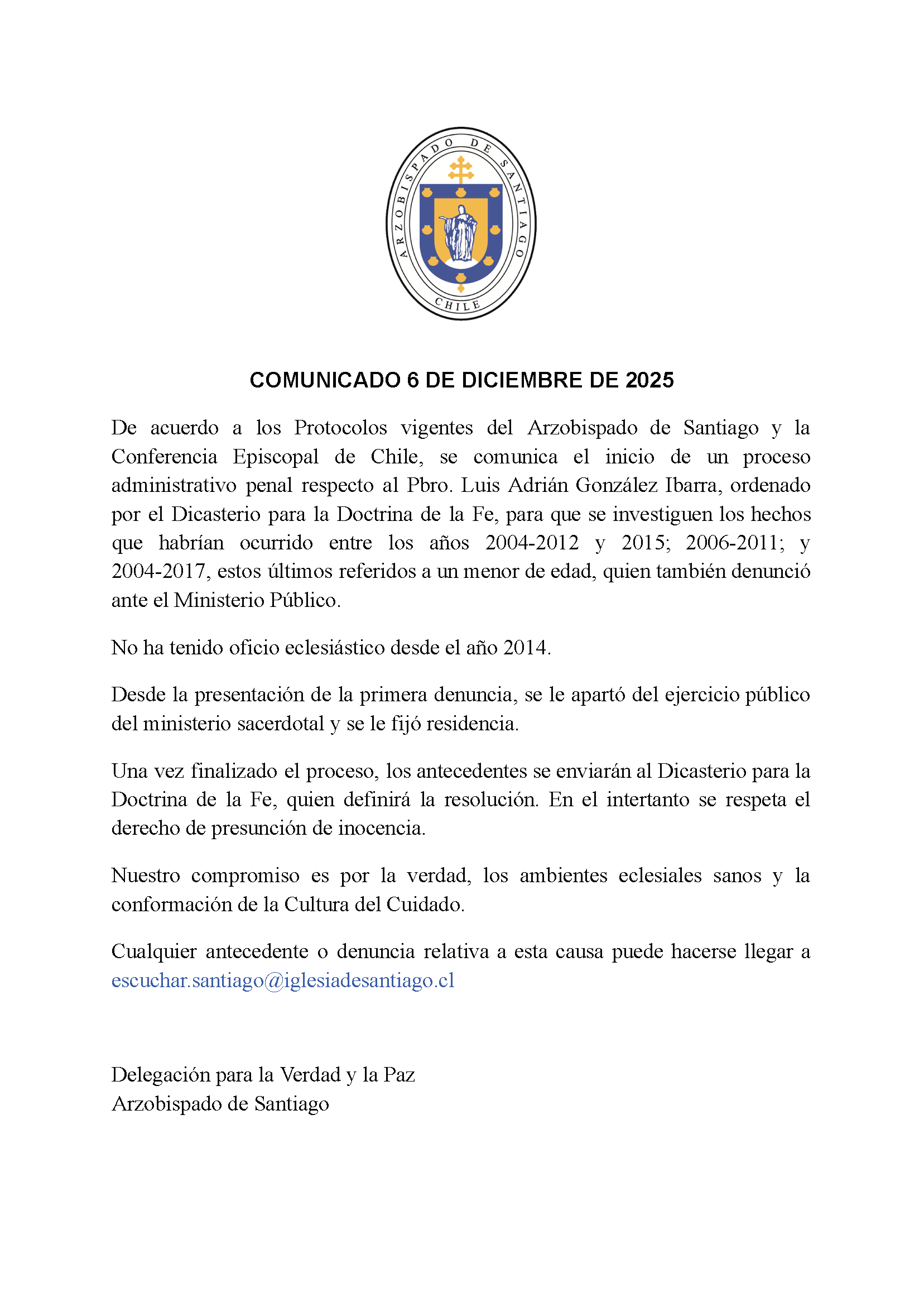 El Cardenal Chomali invita a toda la Iglesia de Santiago a participar en el cierre del Año Jubilar de la Esperanza