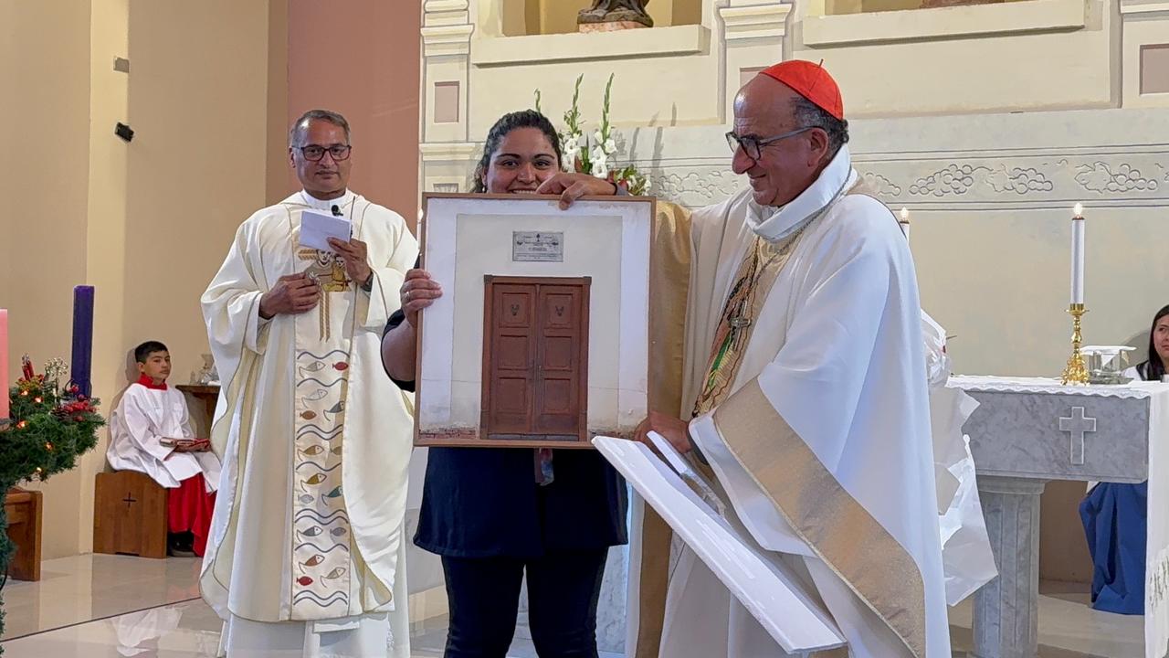 Antes de finalizar la Eucaristía, la comunidad, que este año celebra 201 años de historia, hizo entrega de diversos presentes al Cardenal, entre ellos una carpeta con el registro de sus ancestros y otros obsequios propios de la zona, como signo de gratitud y afecto.