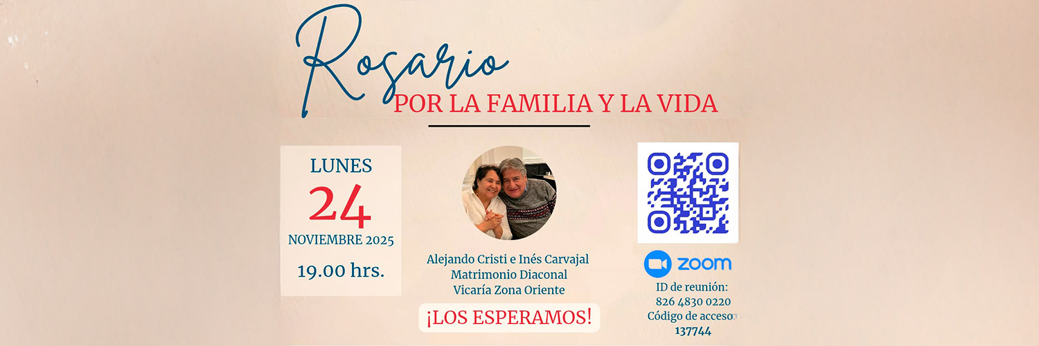 La Delegación Episcopal para la Familia y Vida del Arzobispado de Santiago te invita al Rosario Online por la Familia y la Vida este lunes 24 de noviembre de 2025. Desde tu hogar, reza con nosotros junto a Alejandro Cristi e Inés Carvajal, matrimonio diaconal de la Vicaría Zona Oriente. Conéctate a través de Zoom, […]